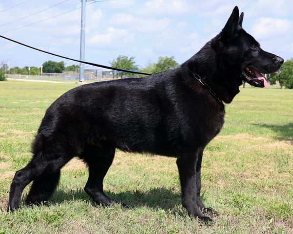 Hugo is a massive stunning male weighing 95lbs. He is very balanced in drives and channels nicely in bitework. Hugo is very loving & social with an amazing temperament in all settings. He is naturally biddable and wants to work his heart out for you. He has beautiful correct grips and definitely passes this down to his offspring as well as plenty of spice and grit in protection.